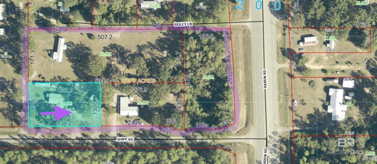 COMMERCIAL OPPORTUNITY! This property is one of 4 lots which could be purchased and developed, providing a space for a large business and room for plenty of parking! This lot is located less than a mile from INTERSTATE 65 and the new NOVELIS Aluminum Plant at the Baldwin County Megasite and is enroute to the Beach by the Gulf Shores Parkway! It is UNZONED and OUTSIDE of City Limits. This listing is for Lot 4, which adjoins Lots 2 & 3, both of which adjoin Lot 1 with 235 feet of frontage on Rabun Road. Lots 1, 2, 3, & 4 are all currently listed for sale by the same agent. One buyer could purchase all 4 lots and own a 4.5 plus Acre Lot between Roley Lane & Shipp Road! There is currently and will be plenty of traffic coming off the interstate heading to and from Novelis to make this a thriving potential business opportunity for generations. The property's current use is residential, but due to Novelis, commercial use is expected soon. The lot is easily accessible by Shipp Road. This lot (#4) has electricity, water and a septic tank. This listing is ONLY for the land. The mobile home and its attachments will be sold separately by the seller. All information deemed credible but to be verified by buyer or their agent. Buyer to verify all information during due diligence.